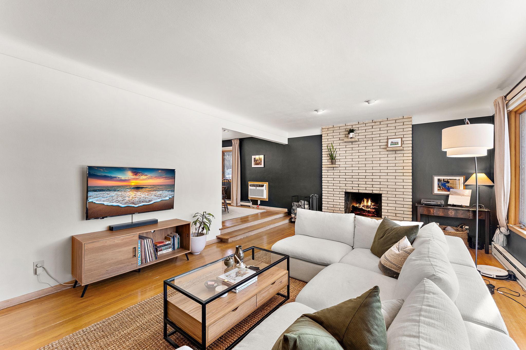 Brick, Family Room, Living Room, Wood Burning